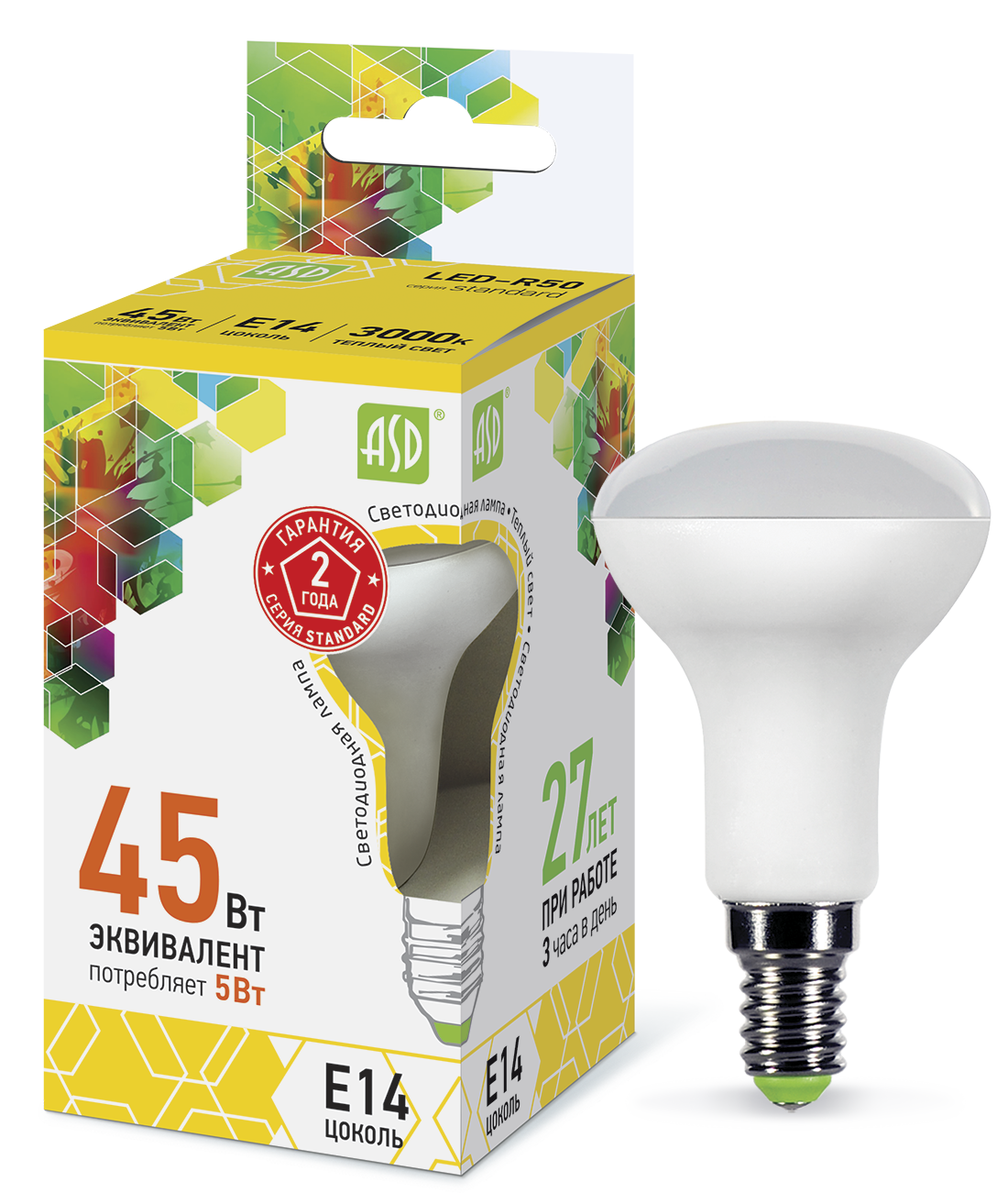 Лампа LED ASD R50 5W 220V 3000К Е14 Standard 10/50
