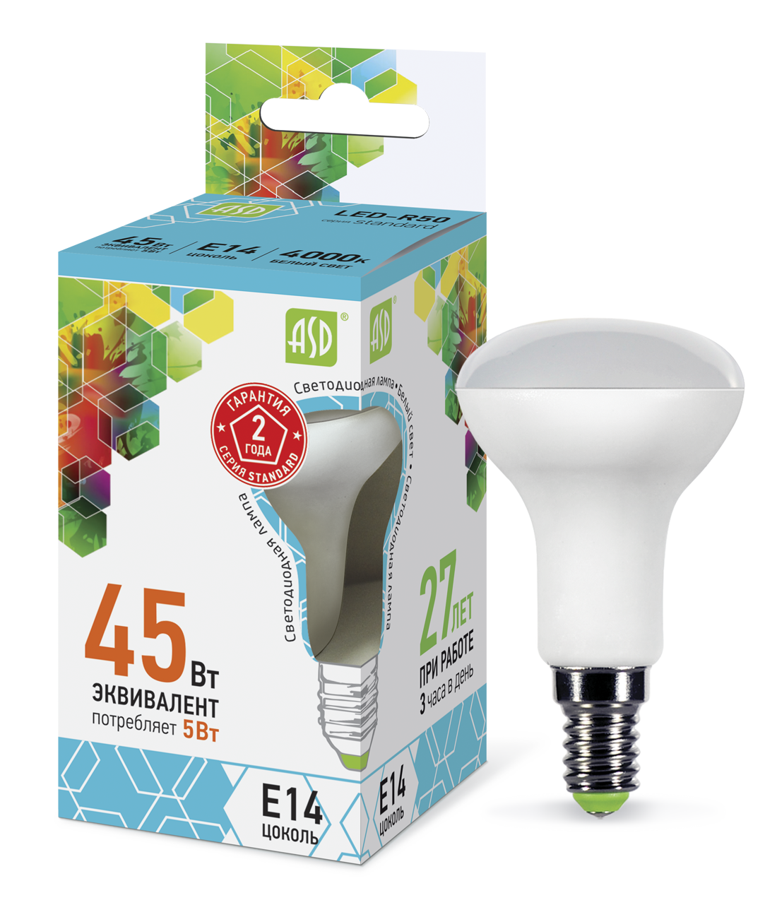 Лампа LED ASD R50 5W 220V 4000К Е14 Standard 10/50