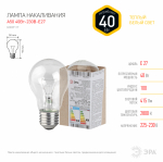 Лампа накаливания A50 груша 40Вт 230В E27 прозрачная в гофре ЭРА 1/100