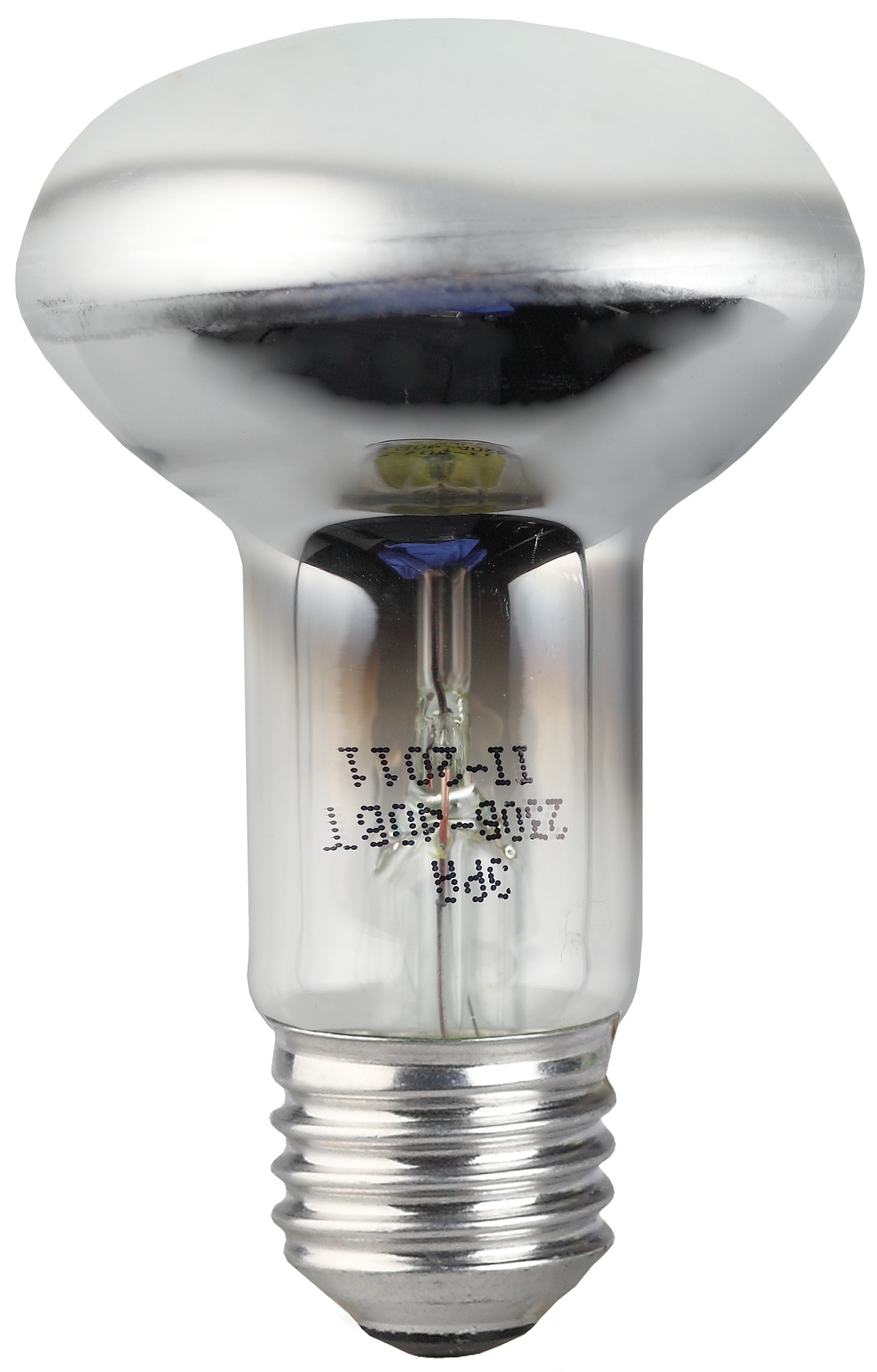 Лампа накаливания зеркальная различного назначения. Широко применяется во встраиваемых потолочных светильниках или так называемых спотах. На нижнюю часть колбы нанесено зеркальное отражающее покрытие, что делает свет этой лампы направленным и часто используется дизайнерами для выделения светом какой-либо части помещения.