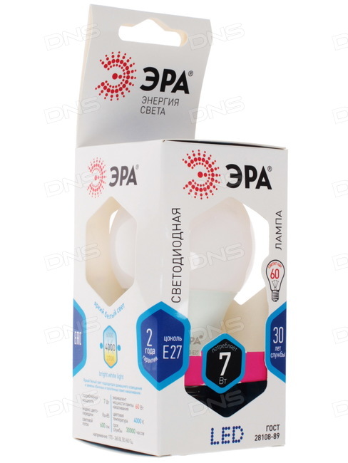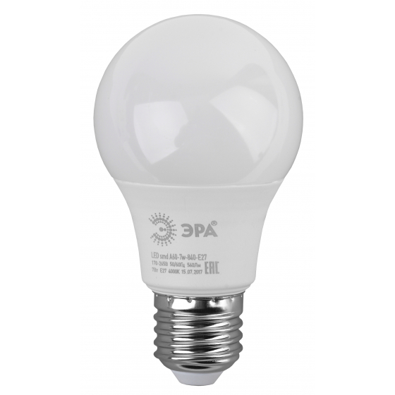 Лампа светодиодная A60 7W 220V 4000K E27 ЭРА 10/100