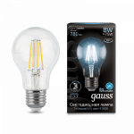 Лампа светодиодная А60 8W 220V Е27 4100К Filament Gauss 1/10/40