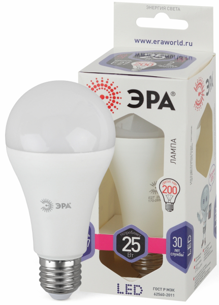 Лампа светодиодная A65 25W 220V 6000K E27 ЭРА 10/100