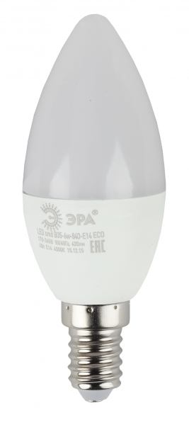 Лампа светодиодная B35 6W 220V 2700K Е14 ЭКО ЭРА 10/100