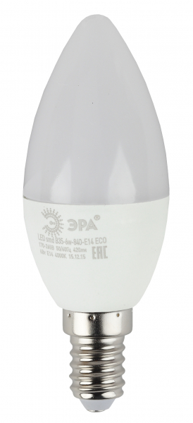 Лампа светодиодная B35 6W 220V 4000K Е14 ЭКО ЭРА 10/100