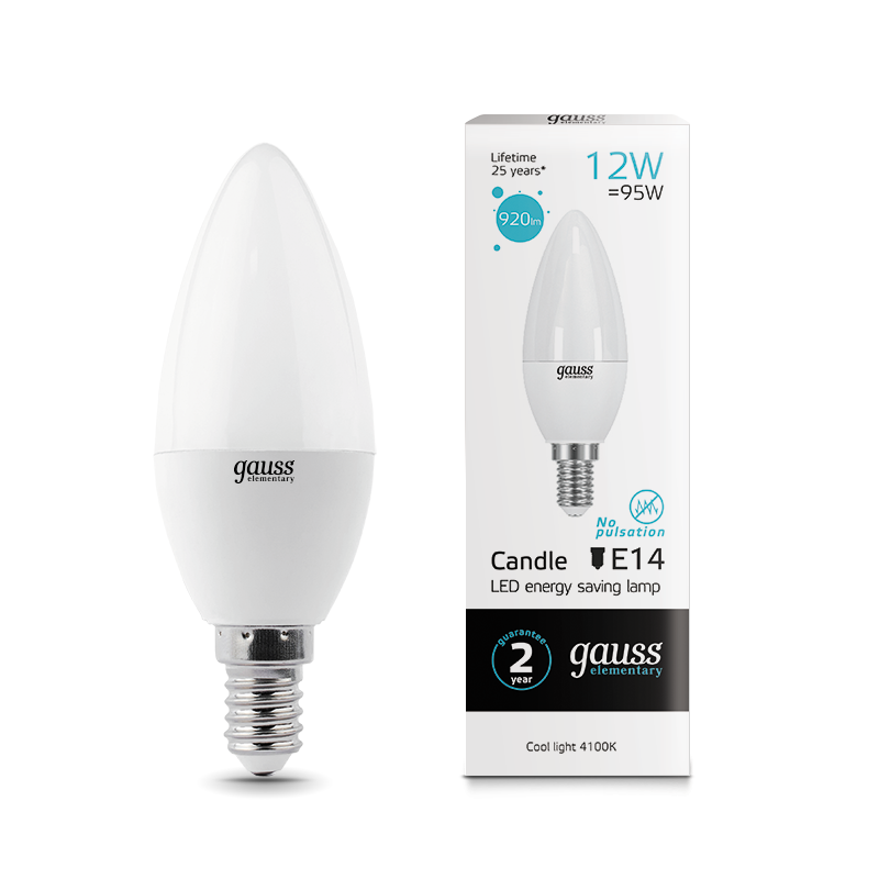 Светодиодные лампы Gauss Elementary Candle созданы в форме свечи. Лампы подойдут как для домашнего, так и для коммерческого использования. Такой тип освещения прекрасно смотрится в светильниках без плафонов или устанавливается в люстры и бра. Модель обладает широким диапазоном цветовых температур и мощностей, что поможет создать атмосферу тепла и уюта или концентрации. Равномерный спектр света создает зрительный комфорт в любом помещении. Данный тип освещения от Gauss обеспечивают стабильную работу в течение всего срока службы.