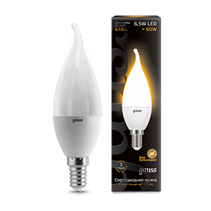 Лампа светодиодная C37T 6.5W 220V E14 2700K Gauss 1/10/50
