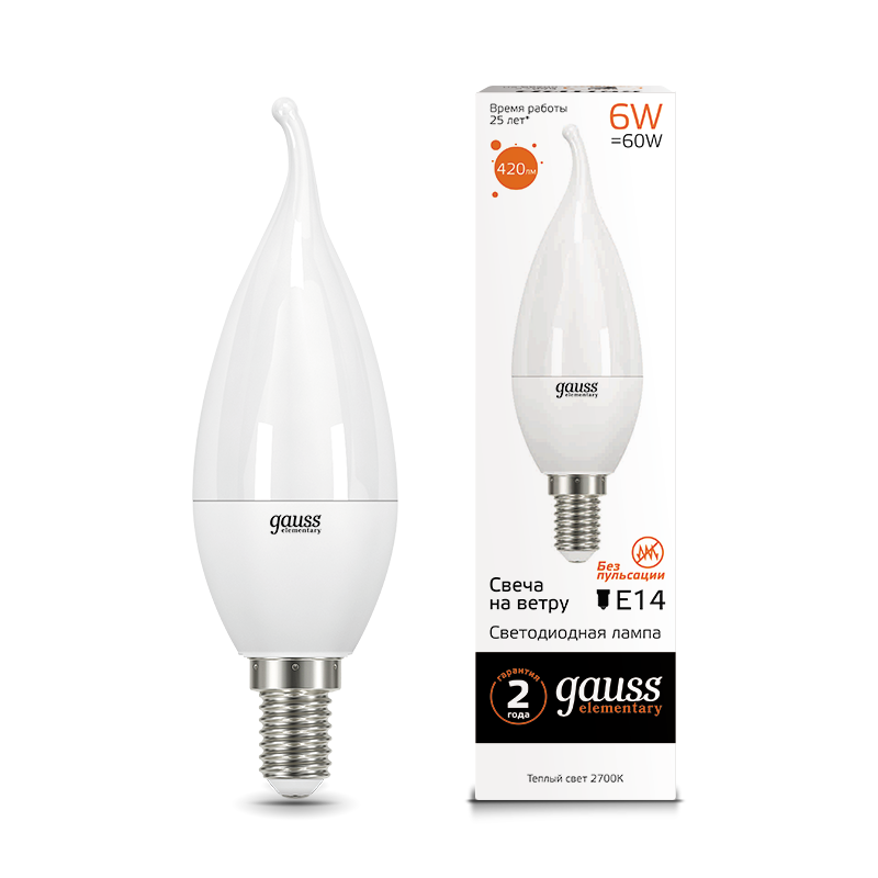 Светодиодные лампы Gauss Elementary Candle созданы в форме свечи. Лампы подойдут как для домашнего, так и для коммерческого использования. Такой тип освещения прекрасно смотрится в светильниках без плафонов или устанавливается в люстры и бра. Модель обладает широким диапазоном цветовых температур и мощностей, что поможет создать атмосферу тепла и уюта или концентрации. Равномерный спектр света создает зрительный комфорт в любом помещении. Данный тип освещения от Gauss обеспечивают стабильную работу в течение всего срока службы.
