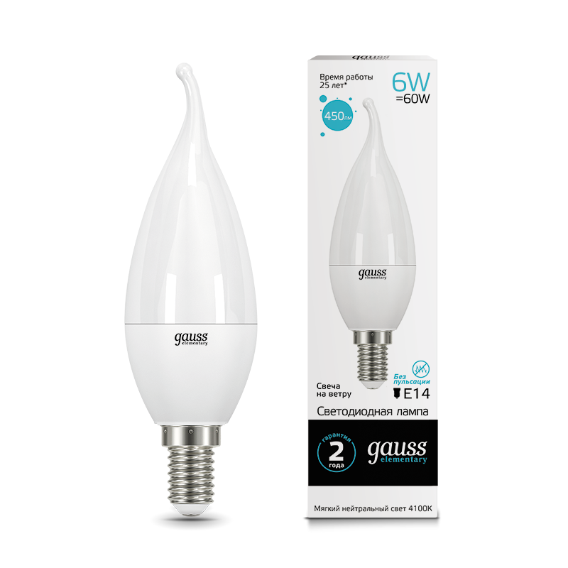 Светодиодные лампы Gauss Elementary Candle созданы в форме свечи. Лампы подойдут как для домашнего, так и для коммерческого использования. Такой тип освещения прекрасно смотрится в светильниках без плафонов или устанавливается в люстры и бра. Модель обладает широким диапазоном цветовых температур и мощностей, что поможет создать атмосферу тепла и уюта или концентрации. Равномерный спектр света создает зрительный комфорт в любом помещении. Данный тип освещения от Gauss обеспечивают стабильную работу в течение всего срока службы.