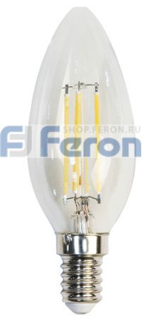 Лампа светодиодная филамент FERON LB-58, C35 (свеча), 5W 230V E14 4000К (белый), рассеиватель прозрачный 550Lm, угол рассеивания 270°, 100*35мм
