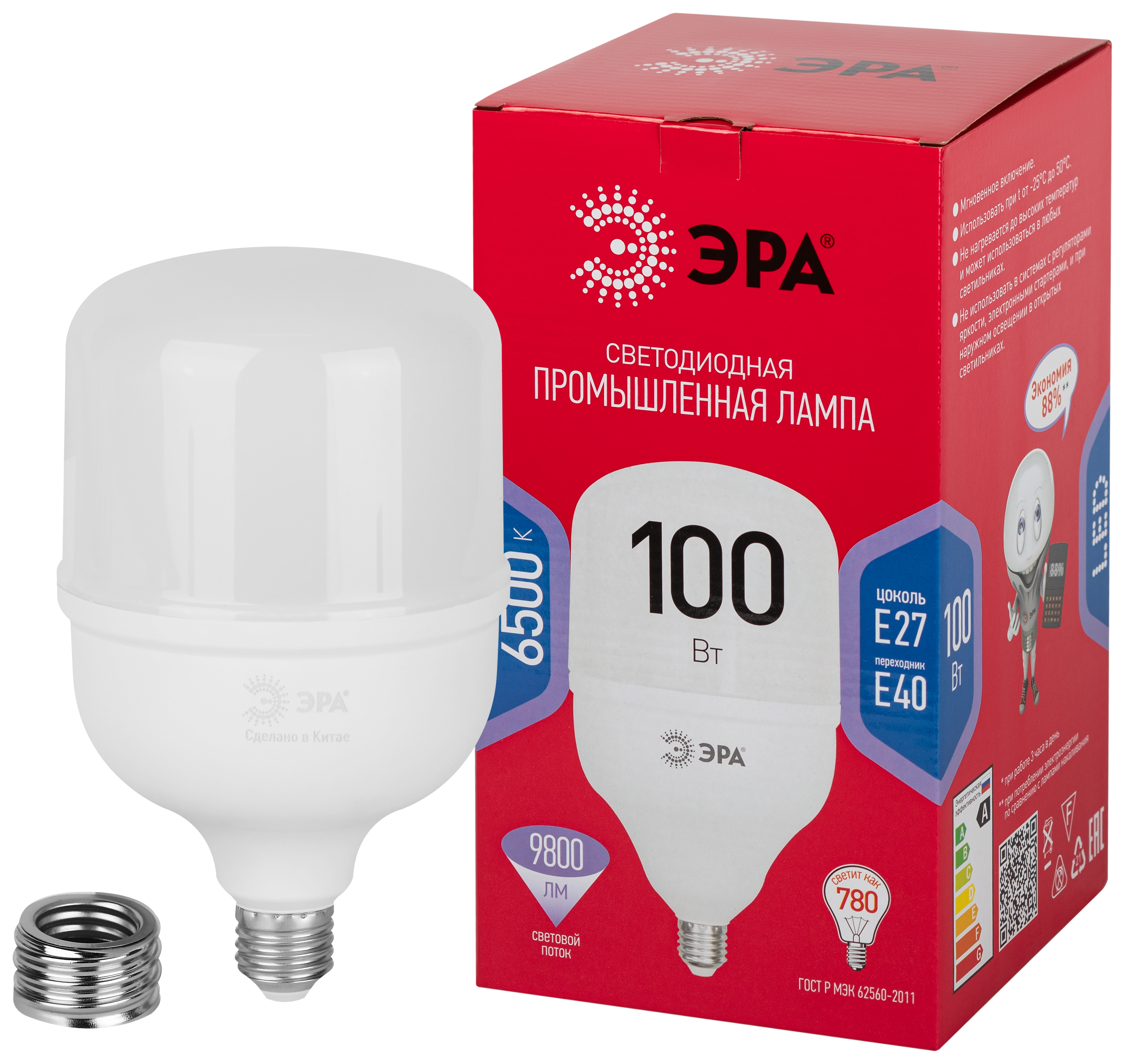 Светодиодная лампа повышенной мощности ЭРА RED LINE LED POWER T140-100W-6500-E27 R идеальна для качественного и экономичного освещения пространств с большой площадью производственных, торговых, выставочных, складских, подсобных помещений. Светит ярко, как лампа накаливания 780 Вт, при этом потребляет мощность всего 100 Вт. Экономит до 90% электроэнергии. Светит холодным белым светом, который способствует концентрации внимания и повышает работоспособность. Не нагревается, включается мгновенно, не мигает. Размеры: 255 х 138 мм. Цоколь Е27/E40