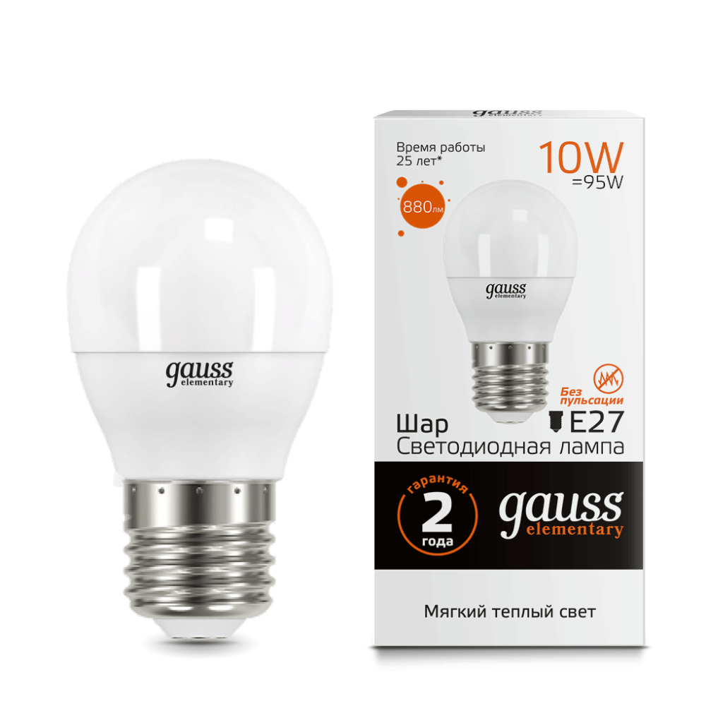 Светодиодные лампы Gauss Elementary – вечная классика, которая является энергосберегающей заменой обычным лампам накаливания. Модели представленные в ассортименте бренда обеспечивают пространство мягким не мерцающим светом и обладают всеми техническими характеристиками европейского уровня. В линейке представлены модели разных форм, высоких мощностей и размеров. Равномерное распределение света создает зрительный комфорт в любом помещении. Данная серия ламп создана для массового потребителя и имеет самое лучшее соотношение цена-качество.