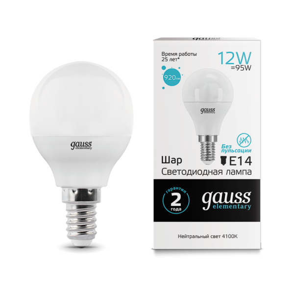 Светодиодные лампы Gauss Elementary – вечная классика, которая является энергосберегающей заменой обычным лампам накаливания. Модели представленные в ассортименте бренда обеспечивают пространство мягким не мерцающим светом и обладают всеми техническими характеристиками европейского уровня. В линейке представлены модели разных форм, высоких мощностей и размеров. Равномерное распределение света создает зрительный комфорт в любом помещении. Данная серия ламп создана для массового потребителя и имеет самое лучшее соотношение цена-качество.
