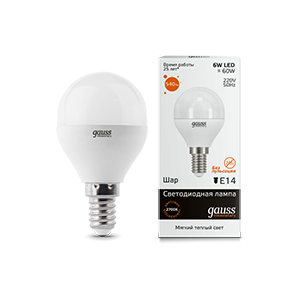 Лампа светодиодная G45 6W 220V 2700K E14 Gauss Elementary Globe 1/10/50