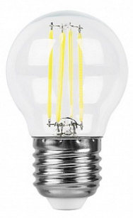 Лампа светодиодная филамент FERON LB-52, G45 (шар малый), 7W 230V E27 2700К (белый теплый), рассеиватель прозрачный 740Lm, угол рассеивания 270°, корпус стекло, 75*45мм