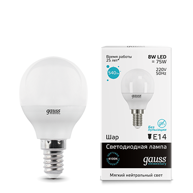 Светодиодные лампы Gauss Elementary – вечная классика, которая является энергосберегающей заменой обычным лампам накаливания. Модели представленные в ассортименте бренда обеспечивают пространство мягким не мерцающим светом и обладают всеми техническими характеристиками европейского уровня. В линейке представлены модели разных форм, высоких мощностей и размеров. Равномерное распределение света создает зрительный комфорт в любом помещении. Данная серия ламп создана для массового потребителя и имеет самое лучшее соотношение цена-качество.