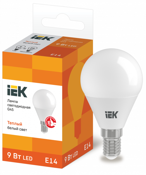 Лампа LED G45 шар 9Вт 230В 3000К E14 IEK предназначена для использования в осветительных приборах наружного и внутреннего освещения объектов промышленного, коммерческого и бытового назначения.Соответствует требованиям Технических регламентов Таможенного союза ТР ТС 004/2011, ТР ТС 020/2011, МЭК 62560, Постановления Правительства РФ от 10.11.2017 № 1356.