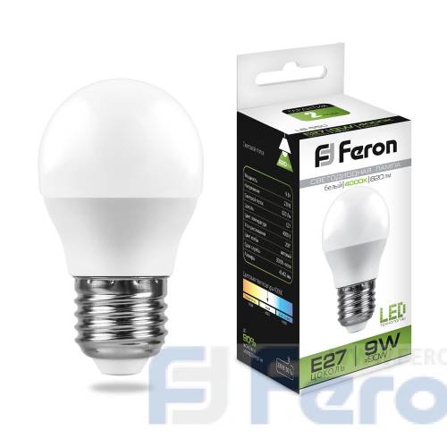 Лампа светодиодная G45 9W 220V 4000К E27 Feron LB-550 10/100