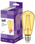 Лампа LED ST64 золото 6Вт 230В 2700К E27 серия 360° IEK с нитевидным светодиодом (филаментная нить) является одним из самых эффективных источников света.Главное отличие от обычных светодиодных ламп – угол рассеивания света до 360° (дополнительный комфорт для глаз). Лампа применяется в осветительных приборах бытового назначения. Представлены в 3 вариантах: с прозрачной, золоченой и матовой колбами.