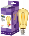 Лампа LED ST64 золото 8Вт 230В 2700К E27 серия 360° IEK с нитевидным светодиодом (филаментная нить) является одним из самых эффективных источников света.Главное отличие от обычных светодиодных ламп – угол рассеивания света до 360° (дополнительный комфорт для глаз). Лампа применяется в осветительных приборах бытового назначения. Представлены в 3 вариантах: с прозрачной, золоченой и матовой колбами.