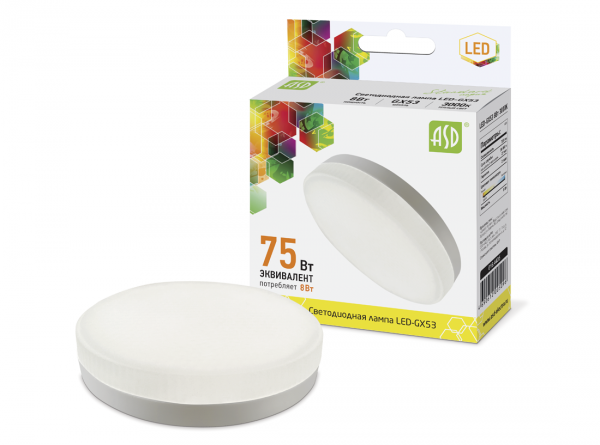 Лампа светодиодная LED-GX53-standard 8Вт 160-260В 3000К ASD 10/50