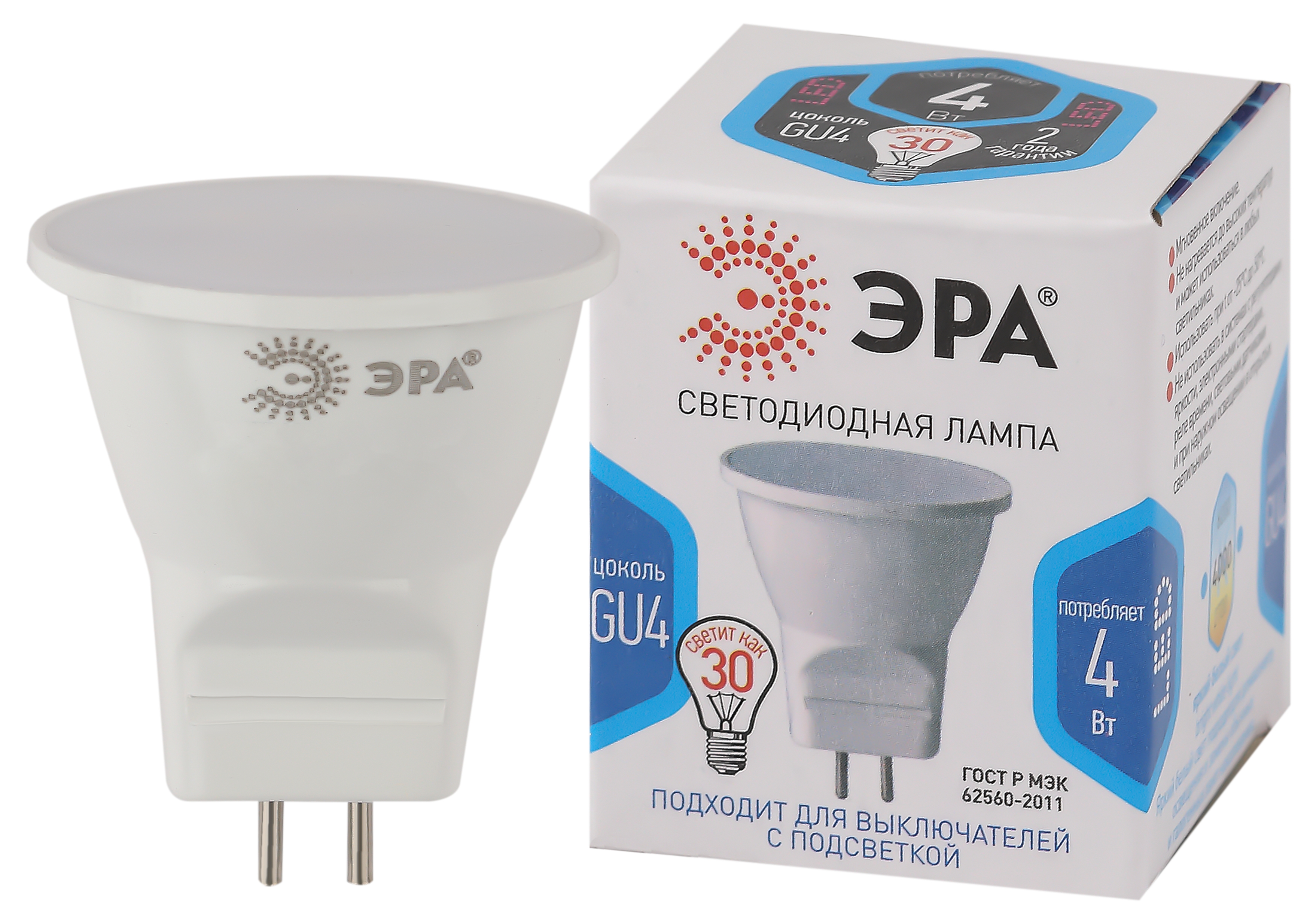Лампа светодиодная (LED) с отражателем d35мм GU4 100° 4Вт 230В матовая 4000К ЭРА (Энергия света)