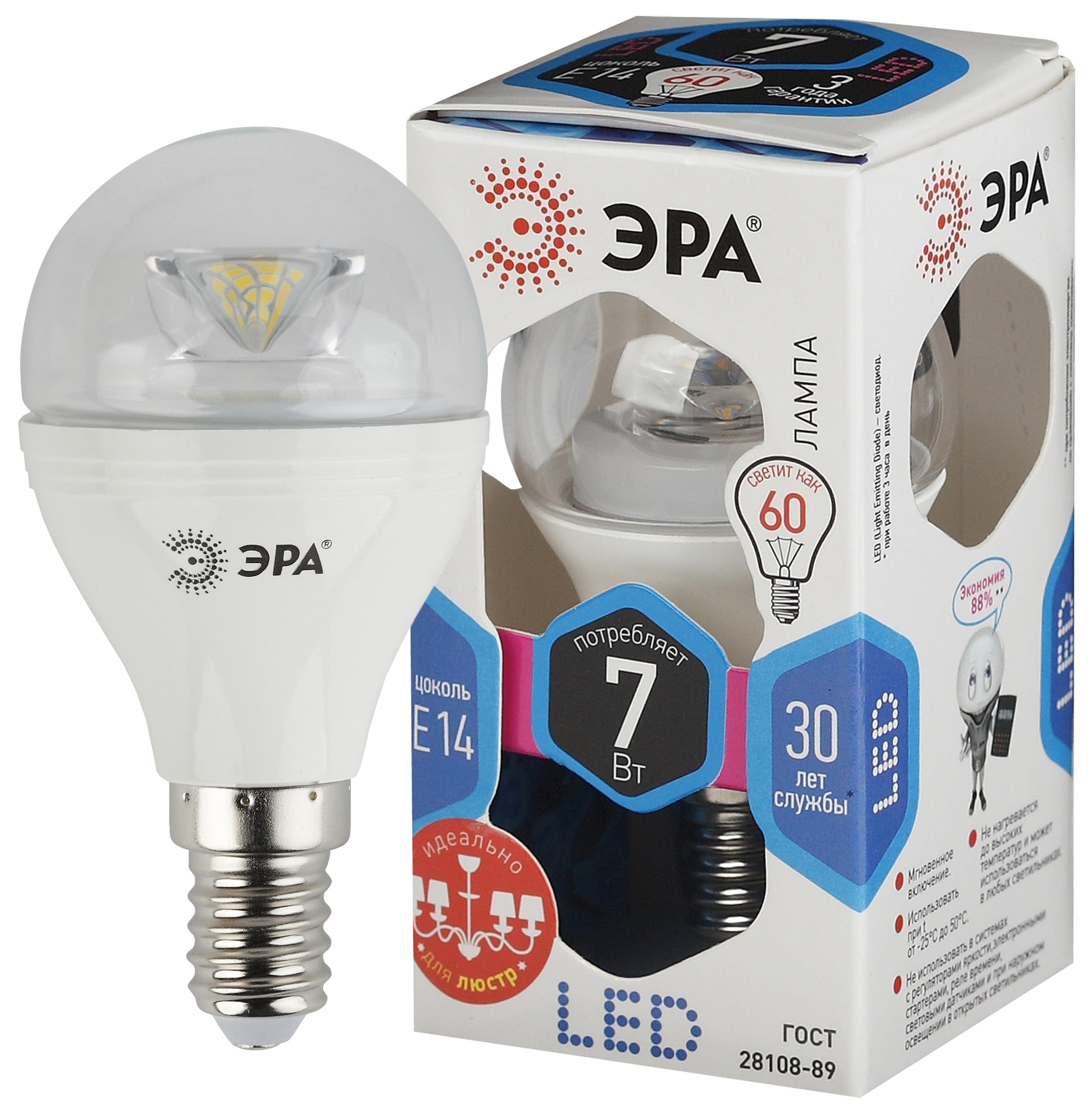 Лампа светодиодная (LED) «шар» d45мм E14 270° 7Вт 170-265В прозрачная нейтральная холодно-белая 4000К ЭРА (Энергия света)