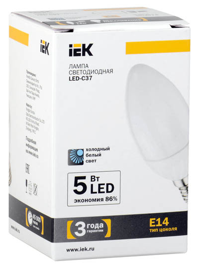 Лампа светодиодная (LED) «свеча» d37мм E14 5Вт 230В матовая нейтральная холодно-белая 4000К IEK (ИЭК)