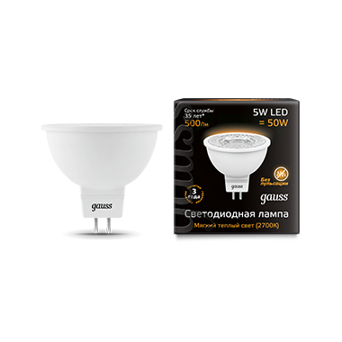 Лампа светодиодная MR16 5W 220V GU5.3 3000K Gauss LENS 1/10/100