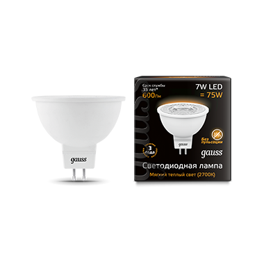Лампа светодиодная MR16 7W 220V GU5.3 3000K Gauss 1/10/100
