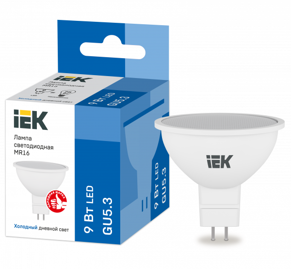 Лампа LED MR16 софит 9Вт 230В 6500К GU5.3 IEK предназначена для использования в осветительных приборах наружного и внутреннего освещения объектов промышленного, коммерческого и бытового назначения.Соответствует требованиям Технических регламентов Таможенного союза ТР ТС 004/2011, ТР ТС 020/2011, МЭК 62560, Постановления Правительства РФ от 10.11.2017 № 1356.
