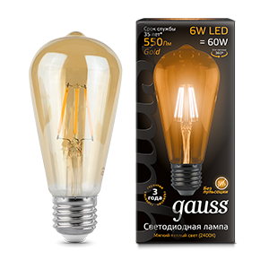 Лампа Gauss LED Filament ST64 E27 6W Golden 550lm 2400К 1/10/40