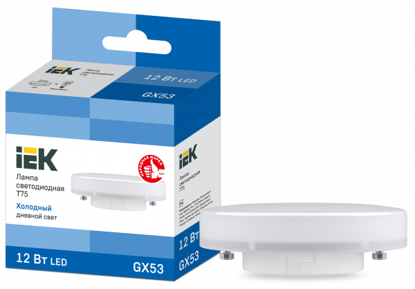 Лампа LED T75 таблетка 12Вт 230В 6500К GX53 IEK предназначена для использования в осветительных приборах наружного и внутреннего освещения объектов промышленного, коммерческого и бытового назначения.Соответствует требованиям Технических регламентов Таможенного союза ТР ТС 004/2011, ТР ТС 020/2011, МЭК 62560, Постановления Правительства РФ от 10.11.2017 № 1356.