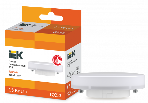 Лампа LED T75 таблетка 15Вт 230В 3000К GX53 IEK предназначена для использования в осветительных приборах наружного и внутреннего освещения объектов промышленного, коммерческого и бытового назначения.Соответствует требованиям Технических регламентов Таможенного союза ТР ТС 004/2011, ТР ТС 020/2011, МЭК 62560, Постановления Правительства РФ от 10.11.2017 № 1356.