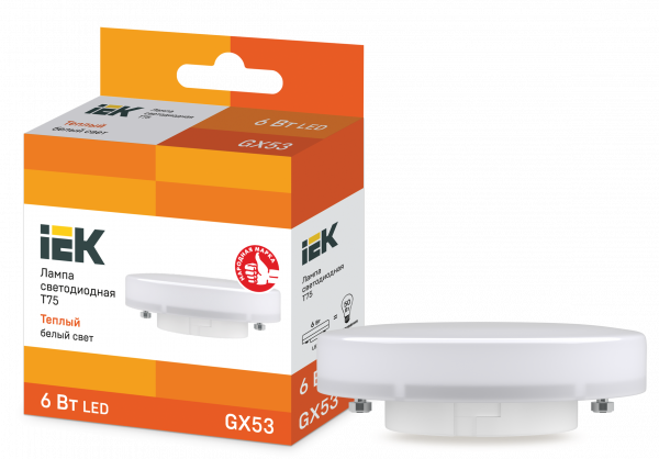 Лампа LED T75 таблетка 6Вт 230В 3000К GX53 IEK предназначена для использования в осветительных приборах наружного и внутреннего освещения объектов промышленного, коммерческого и бытового назначения.Соответствует требованиям Технических регламентов Таможенного союза ТР ТС 004/2011, ТР ТС 020/2011, МЭК 62560, Постановления Правительства РФ от 10.11.2017 № 1356.