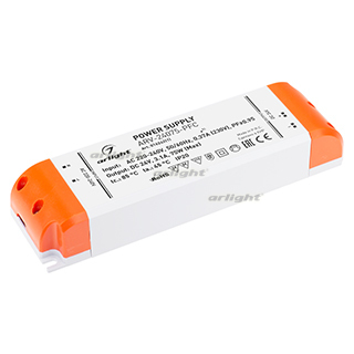 Источник напряжения с гальванической развязкой для светодиодных изделий. Входное напряжение 220-240 VAC. Выходные параметры: 24 В, 3.1 А, 75 Вт. Встроенный PFC >0.9. Негерметичный пластиковый корпус IP 20. Габаритные размеры длина 180 мм, ширина 52 мм, высота 30 мм. Гарантийный срок 2 года.