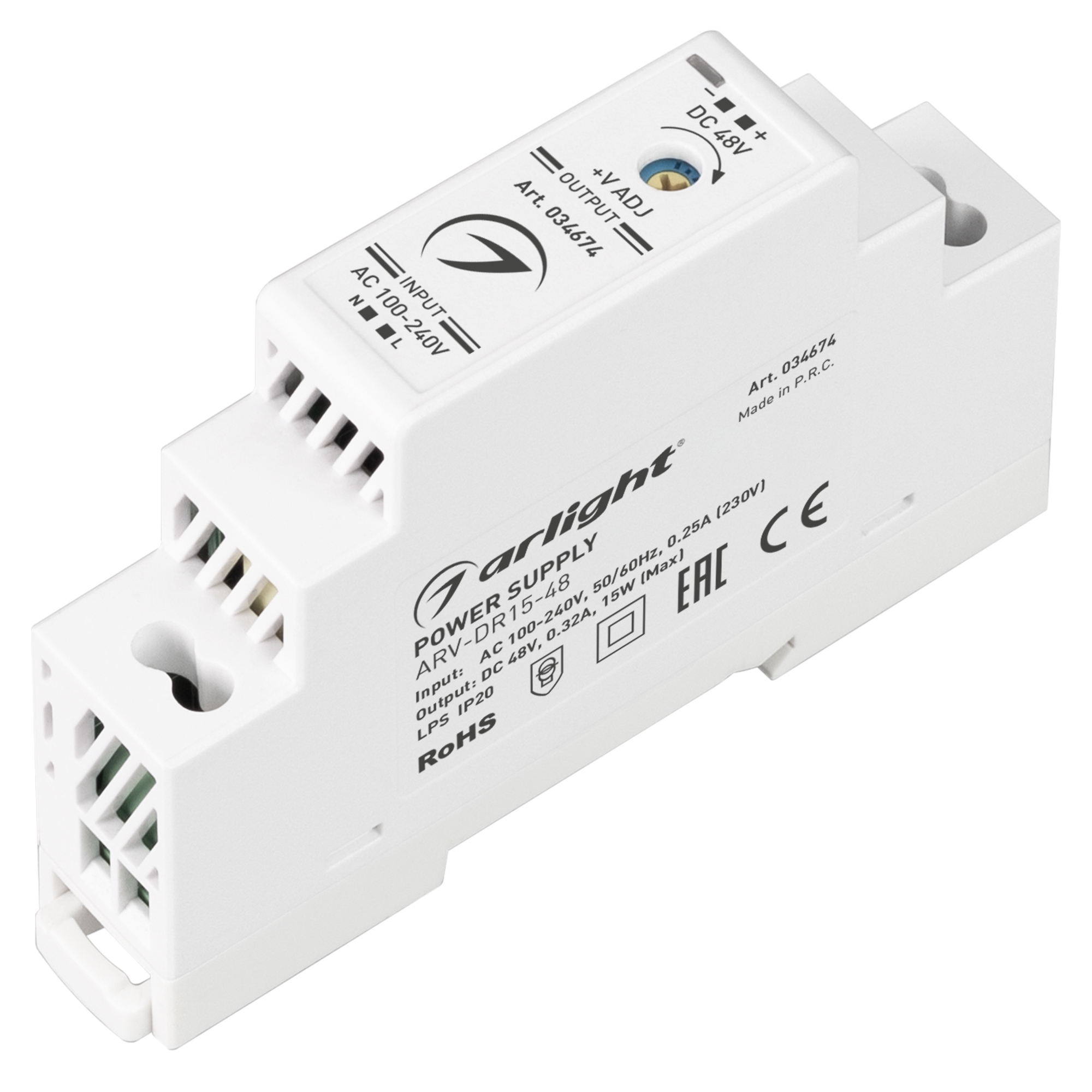Источник напряжения с гальванической развязкой для светодиодных изделий. Входное напряжение 100-240 VAC. Выходные параметры: 48 В, 0.32 А, 15 Вт. Негерметичный пластиковый корпус IP 20 для установки на DIN-рейку. Габаритные размеры длина 58 мм, ширина 17.5 мм, высота 90 мм. Гарантийный срок 3 года.При нагрузке менее 10% после отключения от сети, повторное включение блока питания может быть с задержкой (до 30с)