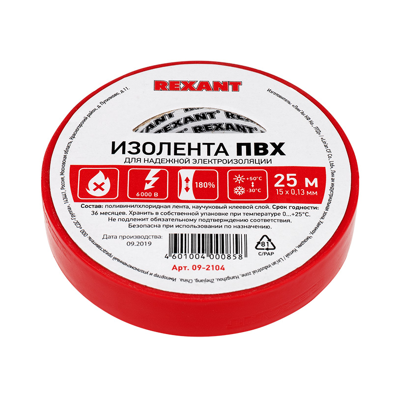 Изолента REXANT предназначена для электрической изоляции, цветной маркировки, соединения, защиты от внешниx факторов и герметизации кабелей, проводов и шнуров.Состав: Лента ПВХ, клеевой слой.