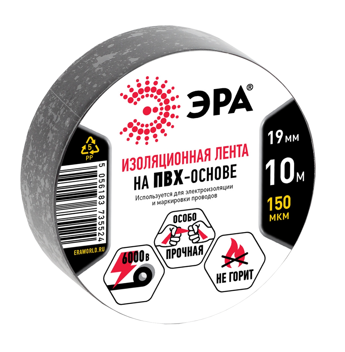 Лента самоклеющаяся изоляционная 10м черная до 70°C ЭРА (Энергия света)
