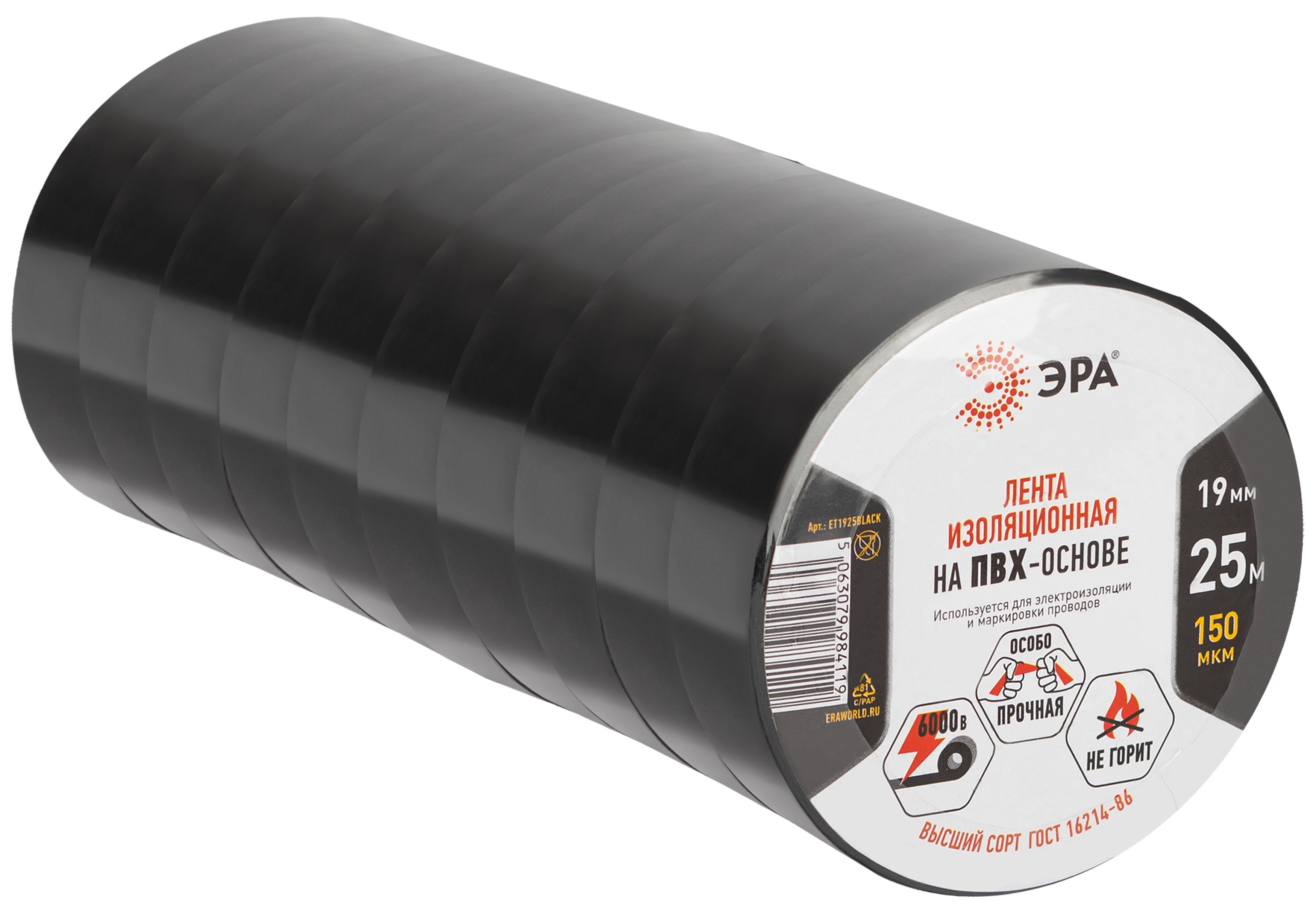Набор 10 шт черных ПВХ-изолент предназначена для электроизоляции и маркировки проводов. Используется при проведении ремонтных работ в промышленных условиях, в быту, в автомобиле. Изоляционная лента может пригодиться и в бытовых ситуациях. Отличается надежностью, прочностью и высоким качеством. Соответствует требованиям ГОСТ 16214 86. Высокий уровень надежности материала можно оценить в показателе растяжения / удлинения поливинилхлоридной ленты. Изоленту для проводки можно применять в условиях разной сложности. Она прекрасно выдерживает различные механические воздействия. ПВХ материал имеет защиту от пробоя. Изоляционная лента используется для создания герметичной защиты электрических соединений, полностью предотвращая возможность поражения электрическим током, препятствует возникновению короткого замыкания и возгорания. Длина намотки ролика – 25 м. Ширина – 19 мм. Диапазон рабочих температур – от -50 до +70C. Изолента может быть использована в уличных условиях, либо внутри помещения. Изолента / клейкая лента / скотч 19мм х 25м черная.