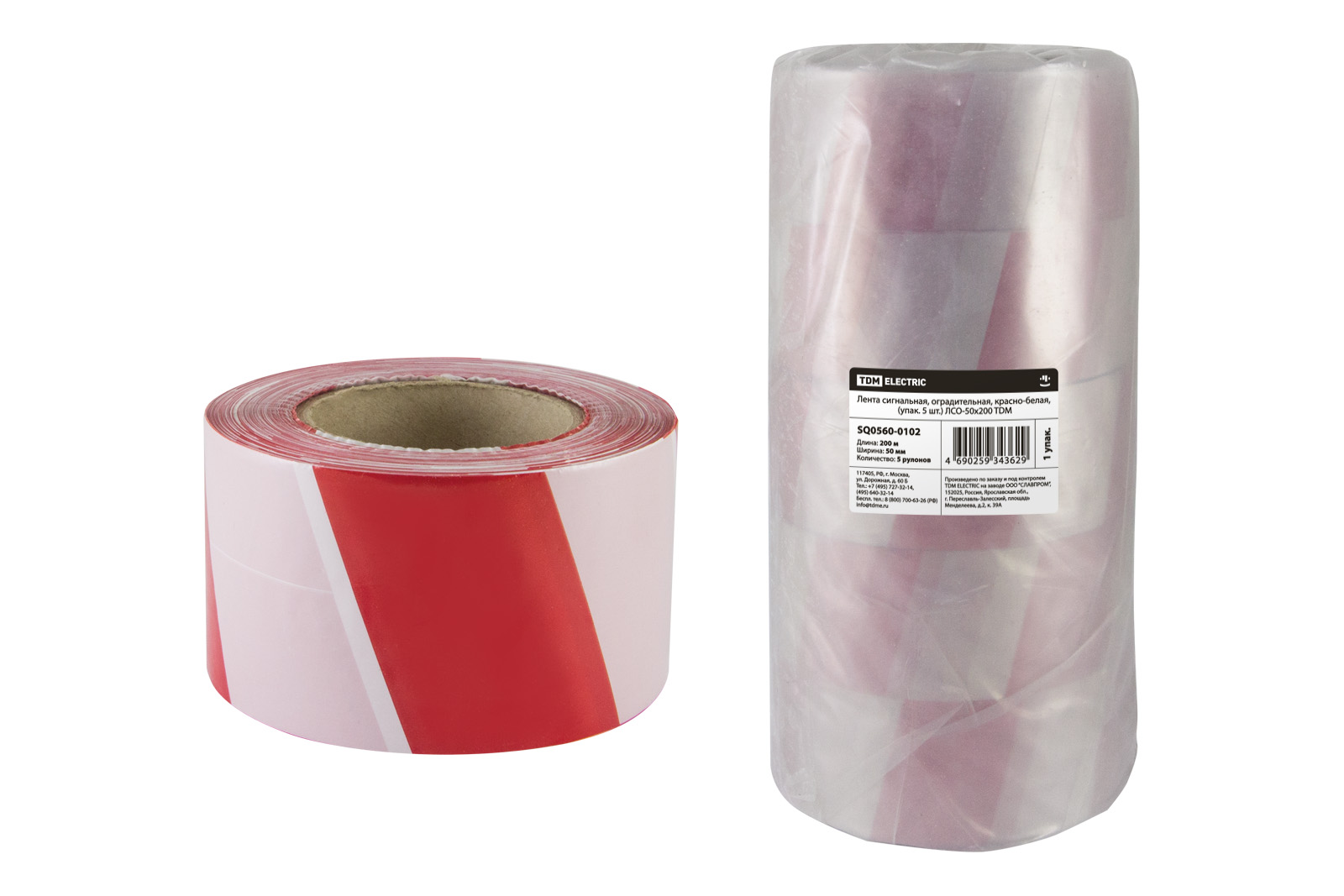 Лента сигнальная, оградительная, красно-белая (упак. 5 шт.) ЛСО-50х200 TDM