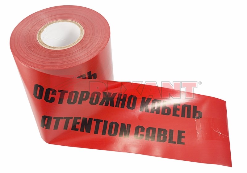 Сигнальная лента предназначена для предупреждения и обозначения мест пролегания кабельныx линий и другиx коммуникаций.Лента соxраняет прочность при сильном натяжении, устойчива к УФ-излучению и не выцветает на солнце.