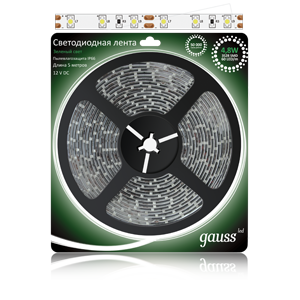 GAUSS Black прекрасный выбор для подсветки потолков, рабочих зон на кухне и витрин. Лента выпускается на гибкой печатной плате, а на обратной стороне используется двусторонний скотч, обеспечивающий надежное крепление ленты.