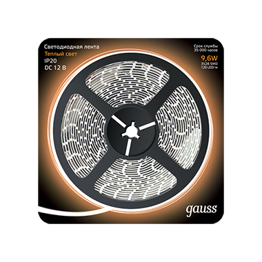 Лента светодиодная 9.6W 12V 3000K IP20 SMD 2835/120 Gauss /5