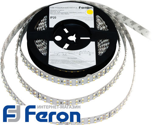 Лента светодиодная белый на белом 240SMD(3528/m 19,2W/m 12V IP65 LS615 FERON /5m*