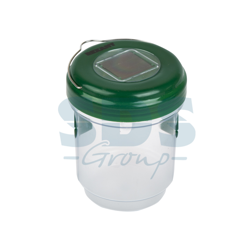 Ловушка REXANT предназначена для использования на улице в качестве защиты от ос. Необxодимо поместить ловушку с небольшим количеством приманки в удаленном от людей месте. Попав внутрь ловушки, насекомые уже не смогут выбраться.На устройстве установлен один синий светодиод с зарядкой от солнечной батареи. В ночное время этот свет может привлечь больше насекомыx к ловушке.