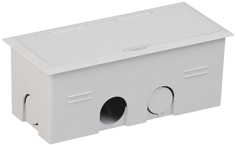 Лючок напольный ONFLOOR 6 mini B. Предназначен для установки в твердые стены и бетонные полы. До начала заливки в коробку необходимо вложить распорку, после затвердевания смеси -удалить. В лючок можно установить 6 модулей (3 поста 45х45 мм / 6 модулей 45х22,5). Размер комплекта в сборе: 175x80x68 мм. Конструкция рамки с крышкой рассчитана на максимальную нагрузку 1000Н на всю поверхность указанного корпуса. Комплект поставки: коробка напольная - 1 шт., распорка - 1 шт., рамка приборная на 6 модулей - 1 шт., крышка - 1 шт., комплект крепежа - 1 компл. Материал: поликарбонат, АБС-пластик. Цвет видимых частей (крышка+рамка): светло-серый RAL 7035.
