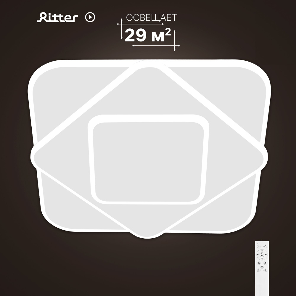 Люстра потол LED димм 88Вт 2700+6400/4200/6400+2700 с ДУ 3 реж 485х485х55 29м² бел Ritter GALASSIA
