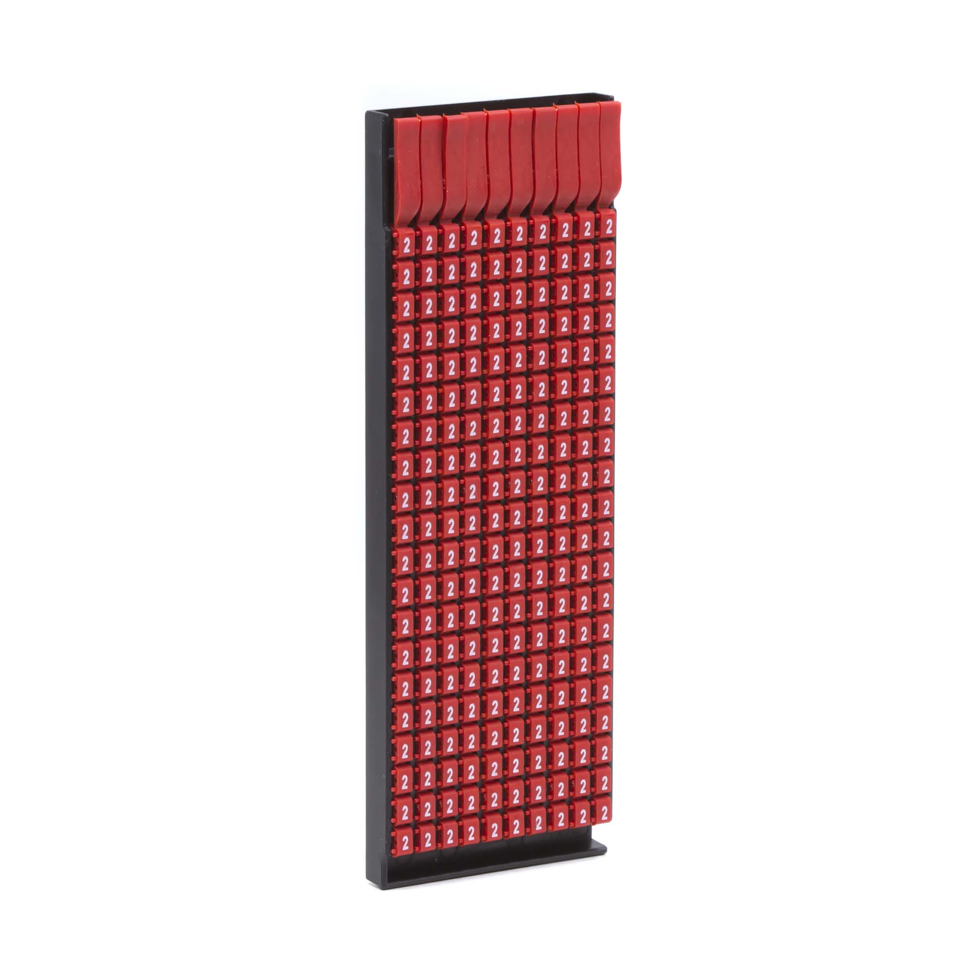 Ручная маркировка системы MARK 3 для маркировки проводов без разъединения электрической цепи из полиамида 6.6. Температура эксплуатации от –40 до +100 °С. Боковые штифты надежно фиксируют соединение друг с другом и позволяют добиться точного выравнивания маркеров. Цвет маркеров соответствует международной кодировке. Символ "2" белым цветом на красном маркере для сечения провода 1.5-2.5 мм2. 200 маркеров в упаковке.
