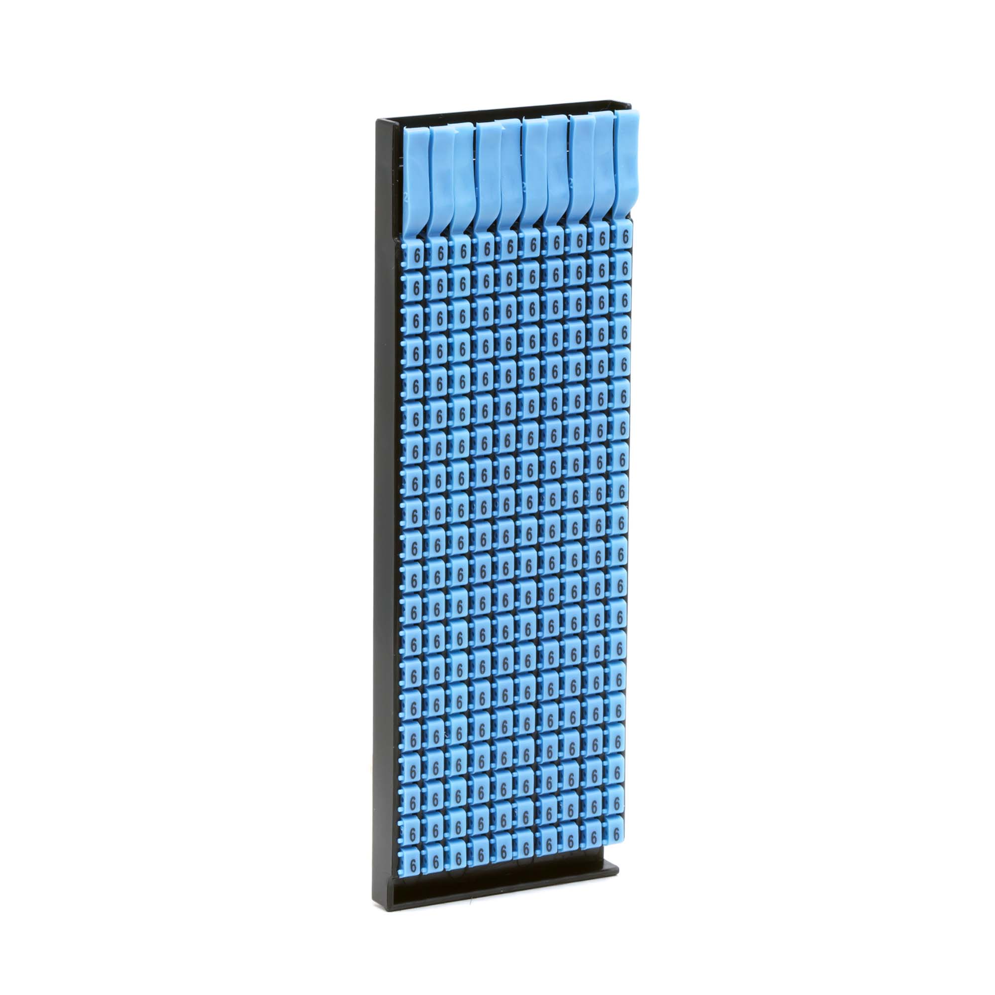 Ручная маркировка системы MARK 3 для маркировки проводов без разъединения электрической цепи из полиамида 6.6. Температура эксплуатации от –40 до +100 °С. Боковые штифты надежно фиксируют соединение друг с другом и позволяют добиться точного выравнивания маркеров. Цвет маркеров соответствует международной кодировке. Символ "6" черным цветом на голубом маркере для сечения провода 1.5-2.5 мм2. 200 маркеров в упаковке.